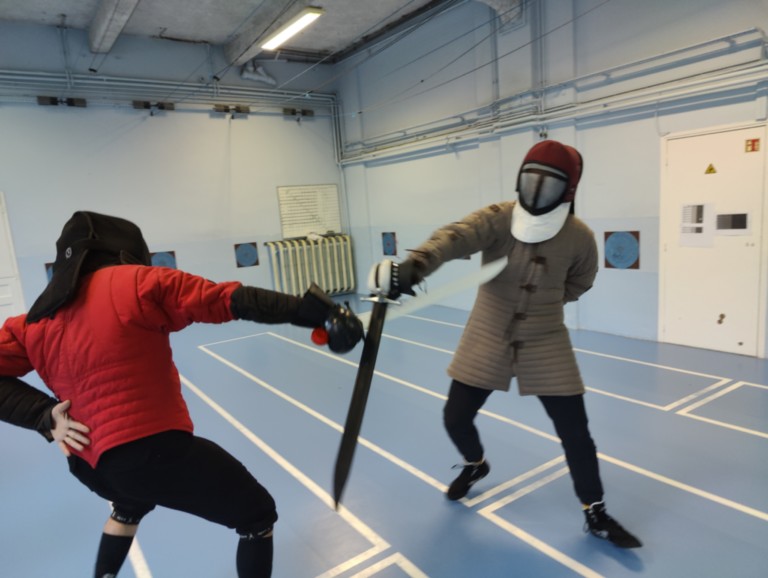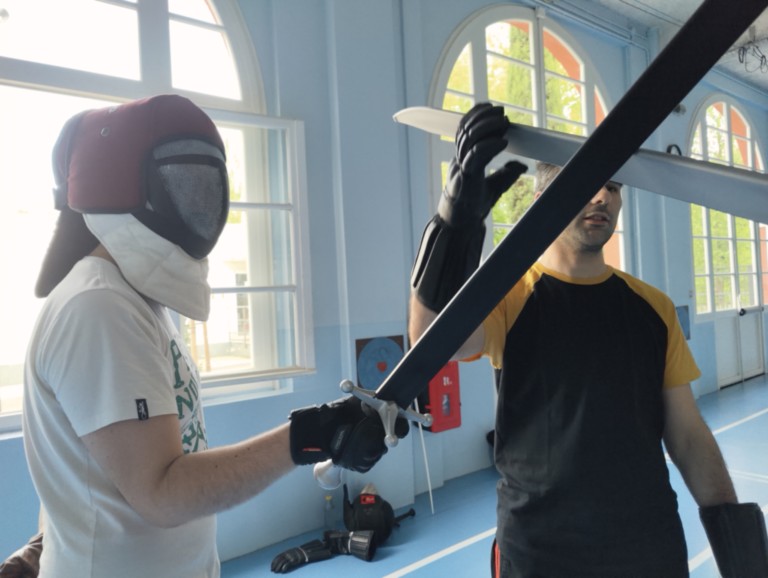 Nous n’avons pas une approche duelliste ou civile même si l’escrime civile fait partie du panel des arts pratiqués.